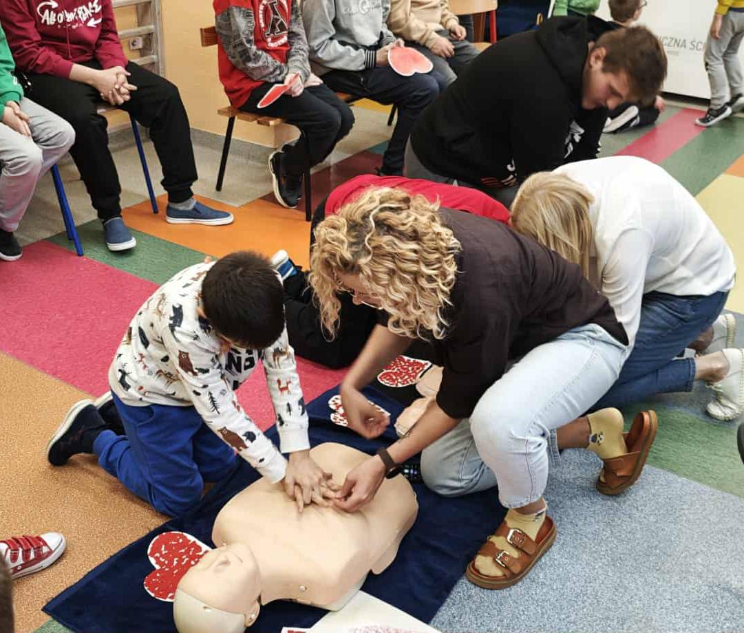 Dnia 16.10.2025 r. nasza szkoła dołączyła do ogólnopolskiej akcji bicia rekordu w jednoczesnym prowadzeniu resuscytacji krążeniowo-oddechowej. W wydarzeniu wzięło udział 23 uczniów i 11 nauczycieli, którzy z pełnym zaangażowaniem ćwiczyli udzielanie pierwszej pomocy. Do ćwiczeń wykorzystano fantomy przekazane przez Wielką Orkiestrę Świątecznej Pomocy, dzięki którym mogliśmy w praktyce doskonalić tak ważne umiejętności. Dziękujemy wszystkim uczestnikom – razem pokazaliśmy, że umiemy i chcemy ratować życie.