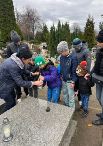 Dziś uczniowie naszej szkoły odwiedzili groby bliskich i przyjaciół, wspominając tych, którzy odeszli. W ciszy i zadumie zapalili znicze, oddając hołd ich pamięci. Pamięć o zmarłych to ważna lekcja szacunku, wdzięczności i refleksji nad tym, co w życiu naprawdę trwałe.