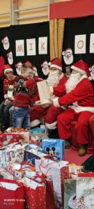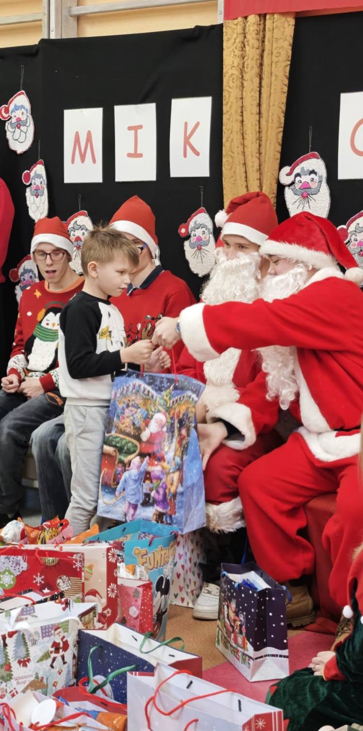 W Zespole Szkół Specjalnych w Świebodzicach po raz kolejny gościliśmy świątecznych gości z Liceum Ogólnokształcącego w Świebodzicach. Ta coroczna inicjatywa, zapoczątkowana przez panią Irenę Horbaczewską i realizowana w ramach wieloletniej współpracy między naszymi szkołami, jest dla naszych podopiecznych wyjątkowym i bardzo wyczekiwanym wydarzeniem. Dzieci od rana wypatrywały gości, którzy w tym roku pojawili się w wyjątkowo licznym składzie — odwiedziło nas aż trzech Mikołajów, którym towarzyszyły urocze Śnieżynki. Licealiści przygotowali dla naszych uczniów upominki, sprawiając im ogromną radość. Podczas spotkania dzieci brały udział w świątecznych zabawach, dzięki którym w całej szkole panowała ciepła, radosna i rodzinna atmosfera. Uśmiechy naszych podopiecznych były najpiękniejszym wyrazem wdzięczności za okazane serce i zaangażowanie młodzieży z LO. Serdecznie dziękujemy uczniom, opiekunom z Liceum Ogólnokształcącego oraz harcerzom za kolejną wizytę, życzliwość i czas poświęcony naszym dzieciom. Dzięki Wam ten dzień stał się wyjątkowy i pełen świątecznej magii.