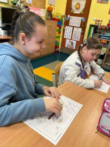 W ramach zajęć czytelniczych nasi uczniowie mieli przyjemność zapoznać się z opowieścią „Boże Narodzenie”. Historia została przedstawiona w formie teatrzyku kamishibai, który wzbudził duże zainteresowanie dzieci. Uczniowie z zaciekawieniem słuchali opowiadania, a następnie aktywnie odpowiadali na pytania związane z wysłuchaną historią. Na zakończenie zajęć dzieci miały okazję pokolorować obrazki przedstawiające sceny związane z Bożym Narodzeniem.
