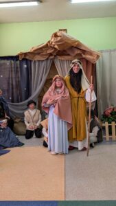 Szkolne jasełka pt: „Tu i teraz” były wyjątkowym wydarzeniem w życiu społeczności szkolnej, podkreślając, że życie rodzi się w wielu wymiarach – idei, piękna i miłości. Wprowadziły w atmosferę refleksji i zadumy. Najmłodsi uczniowie szkoły, pod czujnym i życzliwym okiem pani Elżbiety Dziakowicz – autorki scenariusza oraz pani Joanny Mazurkiewicz, z wielkim zaangażowaniem zaprezentowali starannie przygotowane przedstawienie. Piękna oprawa, autentyczność oraz dziecięca radość sprawiły, że jasełka na długo pozostaną w pamięci wszystkich obecnych.