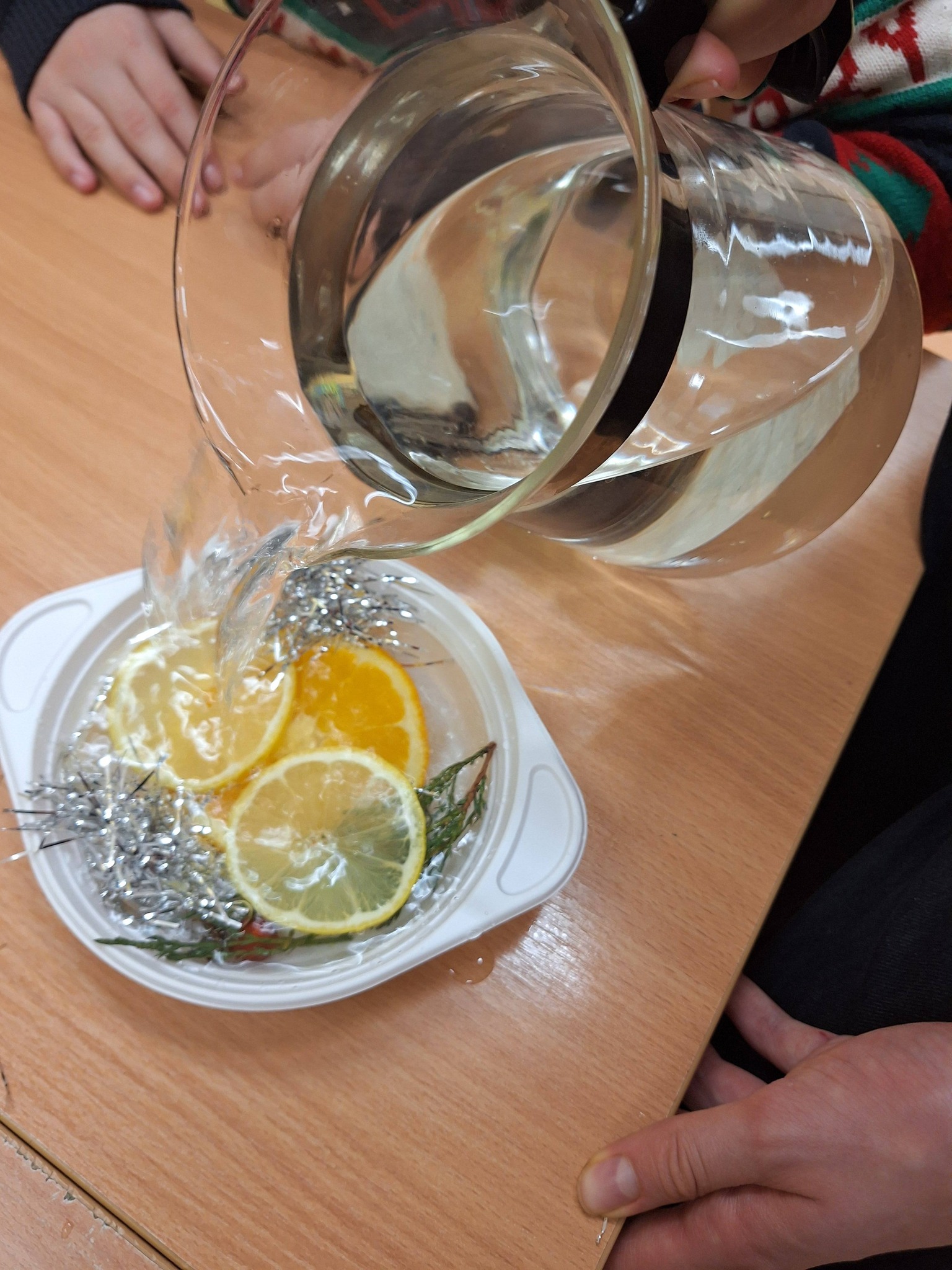 Klasa VI a wykonała ciekawą, sensoryczną ozdobę do powieszenia za oknem – lodowe witraże. Przy ujemnych temperaturach pięknie mieniące się dekoracje mogą wisieć nawet kilka dni, ciesząc nasze oczy.