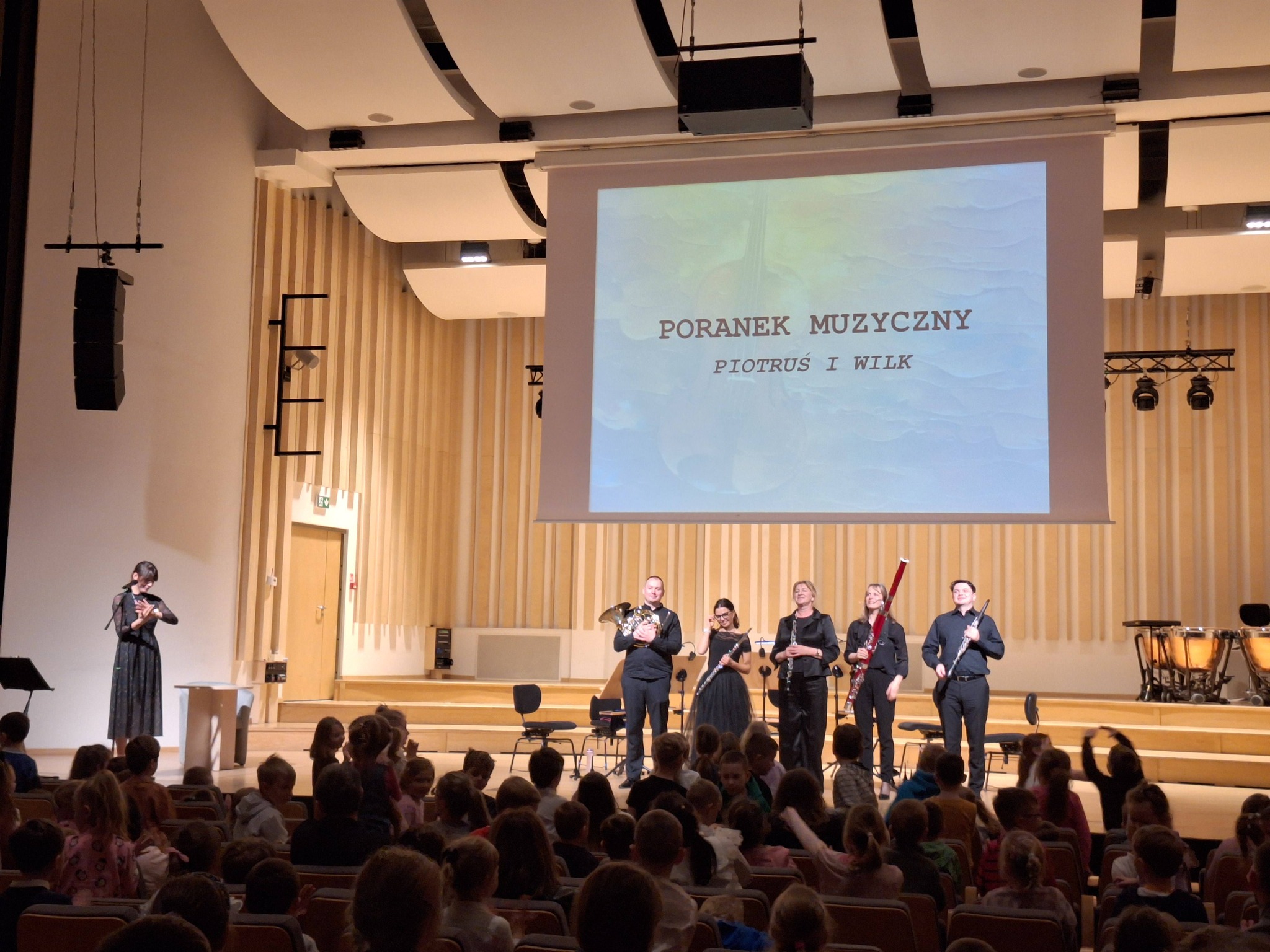 Dziś uczniowie klasy VIa mieli okazję uczestniczyć w wyjątkowym koncercie dla dzieci – muzycznej bajce „Piotruś i Wilk”. Podczas wydarzenia poznaliśmy przygody dzielnego Piotrusia, sprytnego Ptaka, Kaczuszki, tajemniczego Kota oraz groźnego Wilka. Każda z postaci została przedstawiona przez inny instrument orkiestry, dzięki czemu mogliśmy odkrywać świat muzyki klasycznej w ciekawy i bardzo przystępny sposób. Muzyka, narracja i odrobina scenicznej magii sprawiły, że wszyscy z zainteresowaniem śledzili tę niezwykłą opowieść. To była wspaniała okazja do obcowania z kulturą i poznania, jak muzyka potrafi opowiadać historie. Dziękujemy za piękne muzyczne przeżycie.