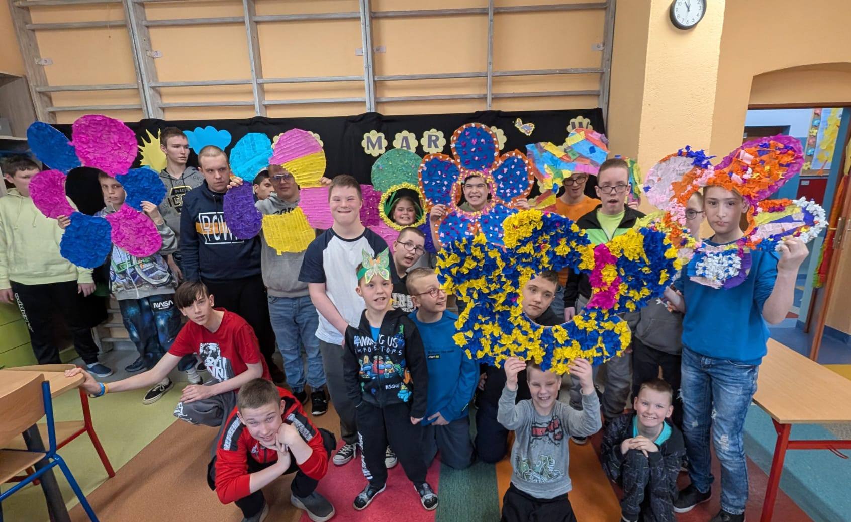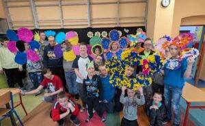 Dziś uczniowie wspólnie uczcili nadejście wiosny. Zaczęliśmy od prezentacji, która wprowadziła nas w radosny, wiosenny nastrój. Następnie sprawdziliśmy swoją wiedzę, rozwiązując wiosenne zagadki. Na zakończenie każda klasa wykonała duży kwiat, który stał się wyjątkową fotobudką. Uczniowie według własnych pomysłów ozdabiali i dekorowali swoje wiosenne kwiaty – kreatywności nie brakowało. Pamiętaliśmy również, że 21 marca to Światowy Dzień Zespołu Downa. Rozmawialiśmy o tym, czym jest Zespół Downa – to wrodzona cecha, z którą niektóre osoby się rodzą i która sprawia, że uczą się i rozwijają w swoim własnym tempie. Dowiedzieliśmy się, że osoby z zespołem Downa mają takie same marzenia, uczucia i potrzeby jak każdy z nas, a ich wyjątkowość polega m.in. na ogromnej otwartości, serdeczności i radości życia. Rozmawialiśmy także o akceptacji, szacunku i o tym, jak ważne jest wspieranie się nawzajem oraz bycie życzliwym każdego dnia. To był dzień pełen radości, integracji i ważnych wartości.