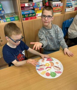 W naszej szkole odbyły się warsztaty edukacyjne poświęcone zdrowiu i zasadom zdrowego odżywiania. Na spotkanie został zaproszony gość, który w ciekawy i przystępny sposób opowiadał nam o piramidzie zdrowia oraz o tym, jak ważne jest dbanie o właściwą dietę i styl życia. Podczas zajęć dowiedzieliśmy się, jakie produkty powinniśmy jeść najczęściej, a które należy ograniczać. Następnie przeszliśmy do części praktycznej. Naszym zadaniem było stworzenie zdrowego posiłku z przygotowanych, wyciętych elementów przedstawiających różne produkty spożywcze. Pani sprawdzała, czy dobrze dobraliśmy składniki i czy nasze posiłki były zgodne z zasadami zdrowego odżywiania. Kolejnym etapem warsztatów były zagadki i pytania związane z tematyką zdrowia. Dzięki nim mogliśmy sprawdzić swoją wiedzę i utrwalić zdobyte informacje. Na zakończenie czekała na nas miła niespodzianka – słodki akcent w postaci owocowych szaszłyków. Każdy mógł samodzielnie przygotować własny deser, wybierając ulubione owoce. Warsztaty były bardzo ciekawe i pouczające. Dowiedzieliśmy się wielu ważnych rzeczy i świetnie się bawiliśmy.