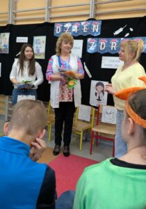 We wtorek w naszej szkole obchodziliśmy Światowy Dzień Zdrowia. Na apel zaprosiliśmy panią Katarzynę Sliwińską – dietetyczkę oraz szkolną pielęgniarkę. W podziękowaniu za trud pracy jaki wkładają pracownicy służby zdrowia, uczniowie przygotowali niespodzianki w formie scenek teatralnych, piosenek, wierszy, życzeń i drobnych upominków. Było wesoło, chwilami wzruszająco. Dziękujemy.